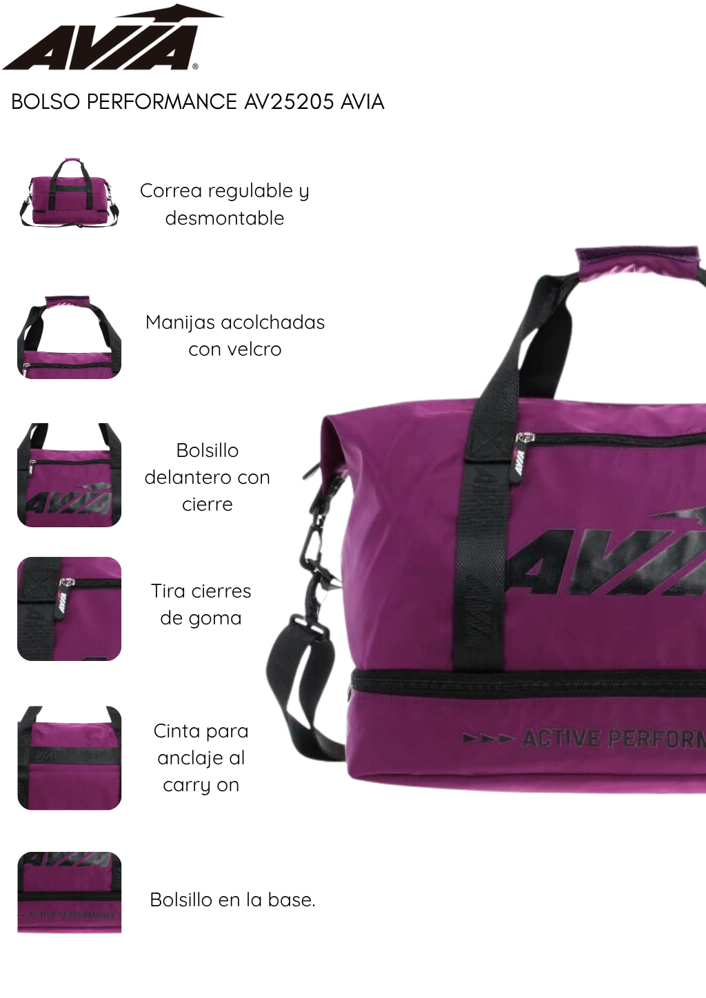 El Bolso Performance AV25205 de Avia está diseñado para ofrecer capacidad, organización y comodidad en un mismo accesorio, ideal para entrenamientos, viajes o uso diario.