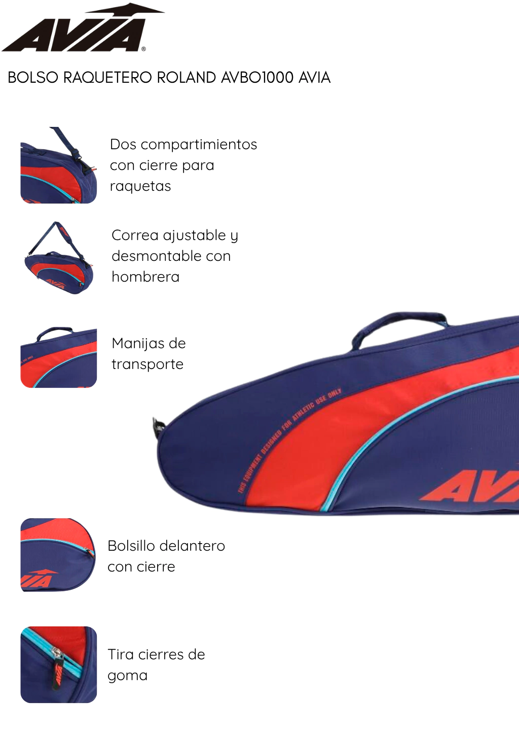 El Bolso Raquetero Roland AVBO1000 de Avia está diseñado para deportistas que buscan practicidad y protección para su equipamiento, este bolso raquetero ofrece gran capacidad y detalles funcionales para un transporte cómodo y seguro.