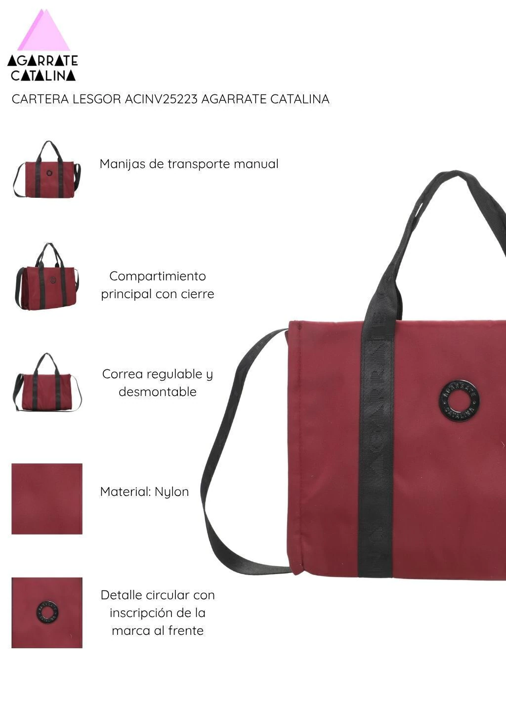 La Cartera Lesgor ACINV25223 de Agarrate Catalina es una opción liviana y funcional, ideal para acompañarte en tus actividades cotidianas. Su diseño permite llevar todo lo necesario con comodidad, mientras que sus terminaciones y estilo urbano la convierten en una pieza versátil y práctica. Perfecta para el uso diario.