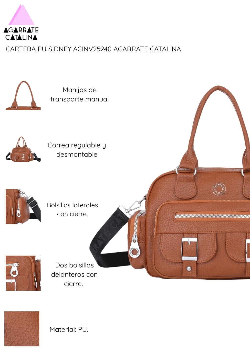 La Cartera PU Sidney ACINV25240 de Agarrate Catalina se destaca por su diseño amplio y funcional, ideal para quienes buscan un accesorio con gran capacidad de guardado sin perder estilo. Su estructura firme, múltiples compartimientos y terminaciones en PU la convierten en una opción versátil para el uso diario.