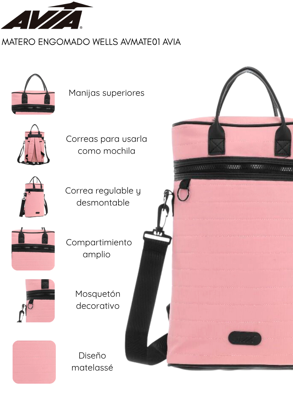 El Matero Engomado Wells AVMATE01 de Avia combina estilo y funcionalidad con un diseño moderno y detalles cuidadosamente pensados, ofreciendo practicidad y elegancia en cada salida.