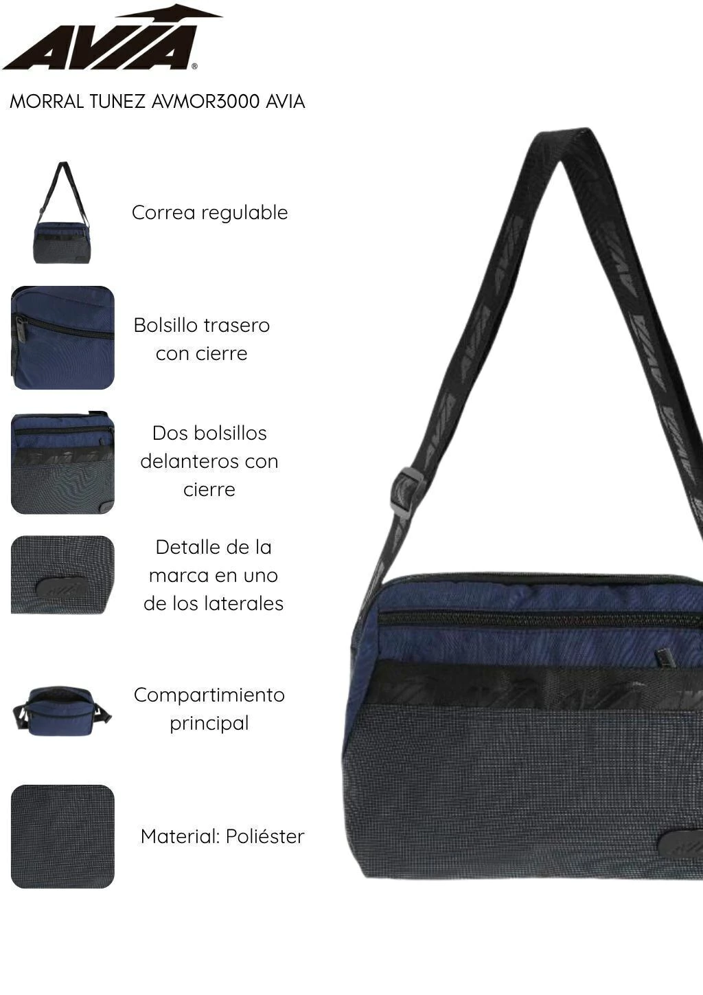 El Morral Tunez AVMOR3000 de Avia esta diseñado para brindar practicidad y organización en el día a día, con un estilo urbano y versátil que se adapta a distintas ocasiones.