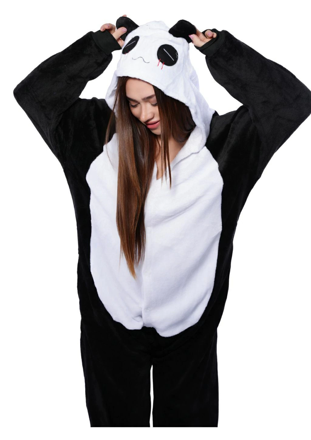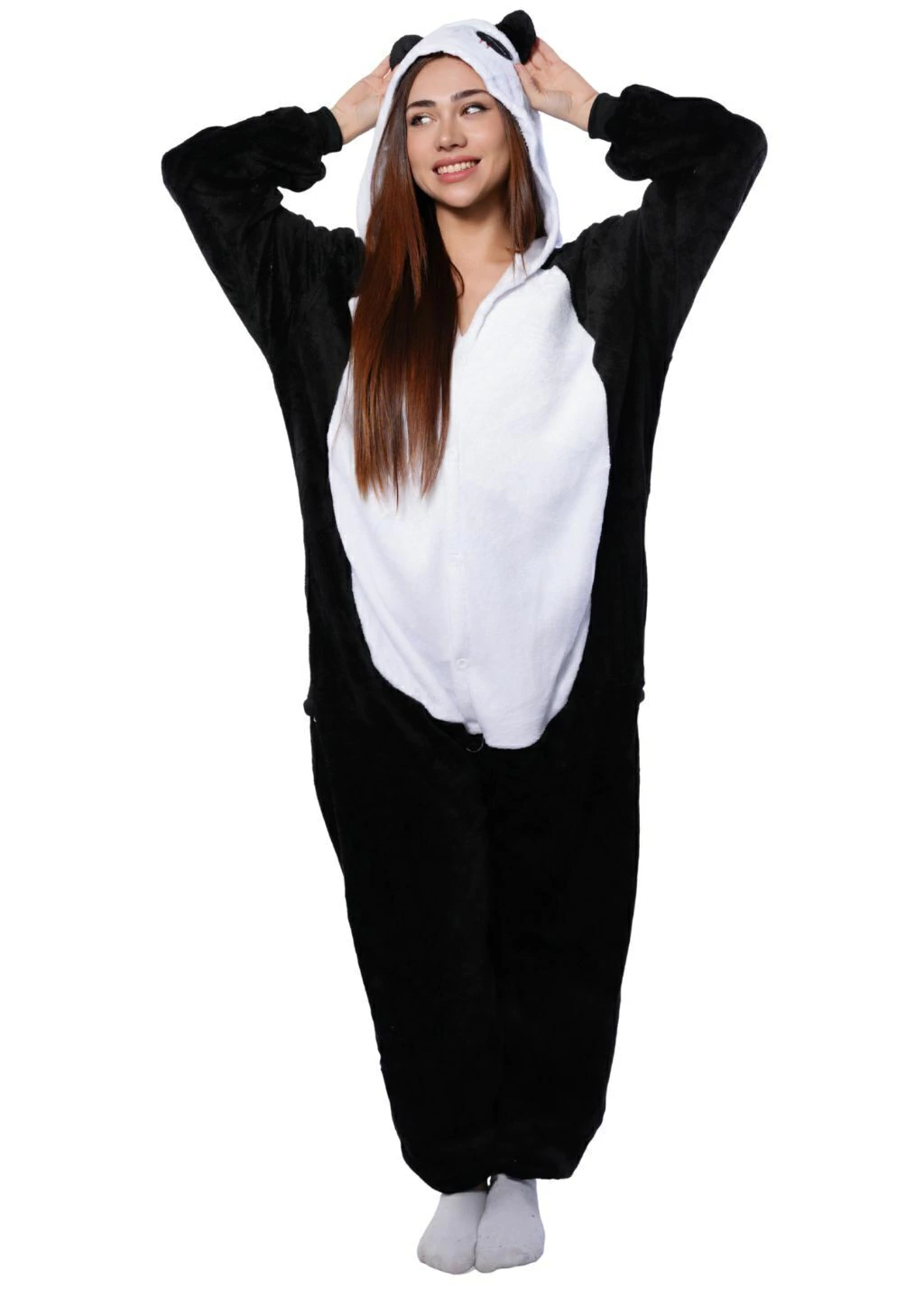 • Capucha con diseño de osito panda y orejitas