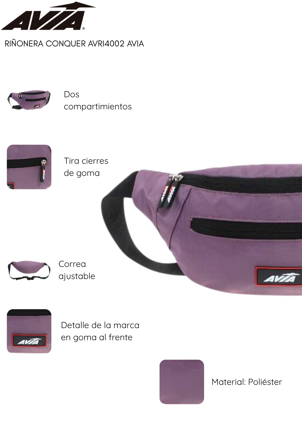 La Riñonera Conquer AVRI4002 de Avia es práctica y ligera, ideal para llevar lo esencial con comodidad y seguridad, perfecta para uso urbano, viajes o actividades al aire libre.