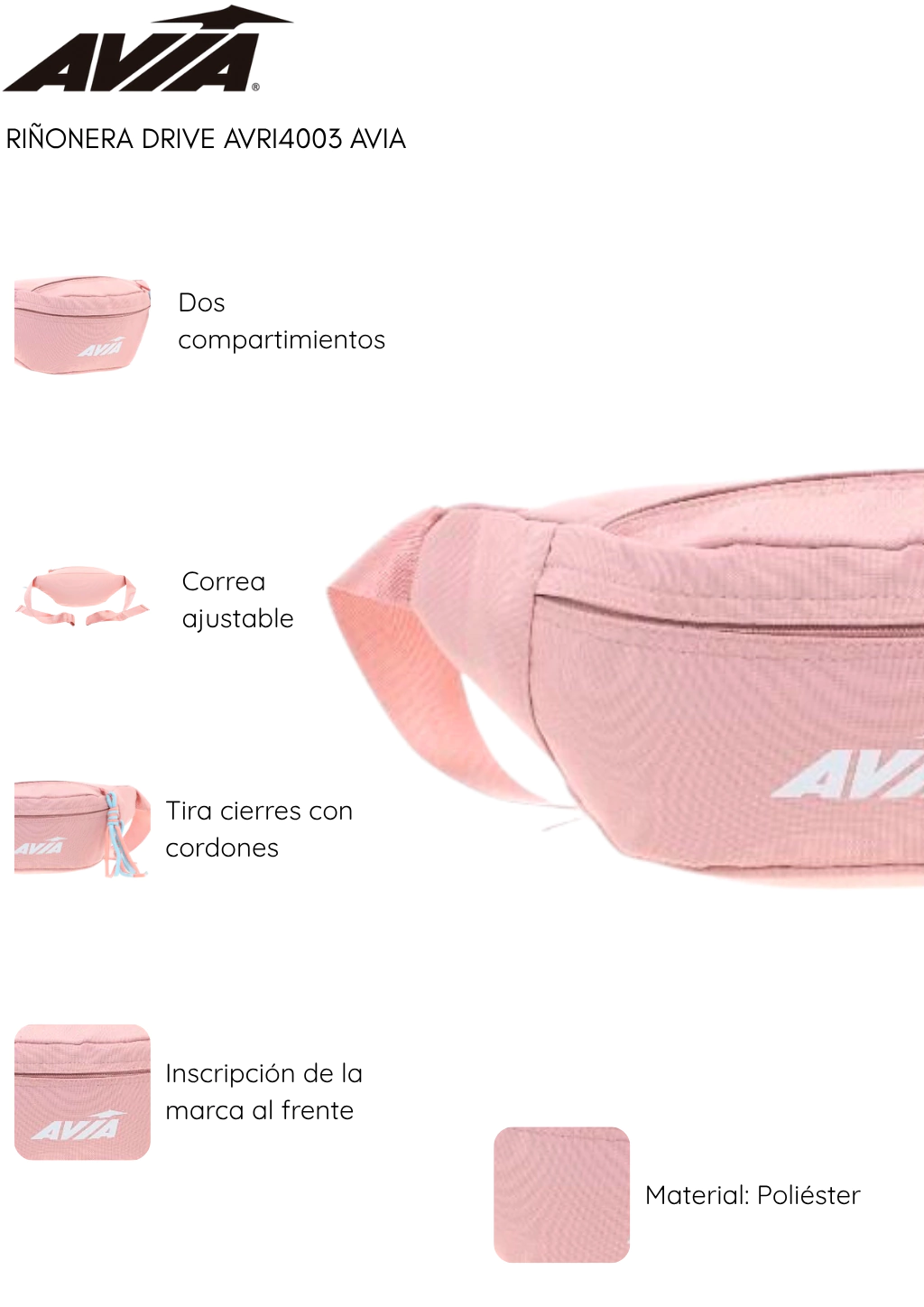 La Riñonera Drive AVRI4003 de Avia es ligera y funcional, perfecta para llevar lo esencial de forma segura y cómoda, ideal para actividades urbanas, viajes o entrenamientos.