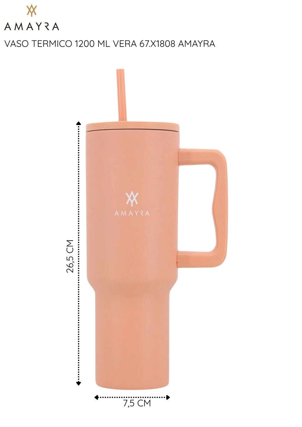 El Vaso Térmico 1200 ML Vera 67.X1808 de Amayra combina funcionalidad y diseño en un formato moderno y reutilizable. Fabricado en 100% acero inoxidable y libre de BPA, está pensado para acompañarte todos los días manteniendo tus bebidas a la temperatura ideal por más tiempo, gracias a su doble pared con aislamiento al vacío.
